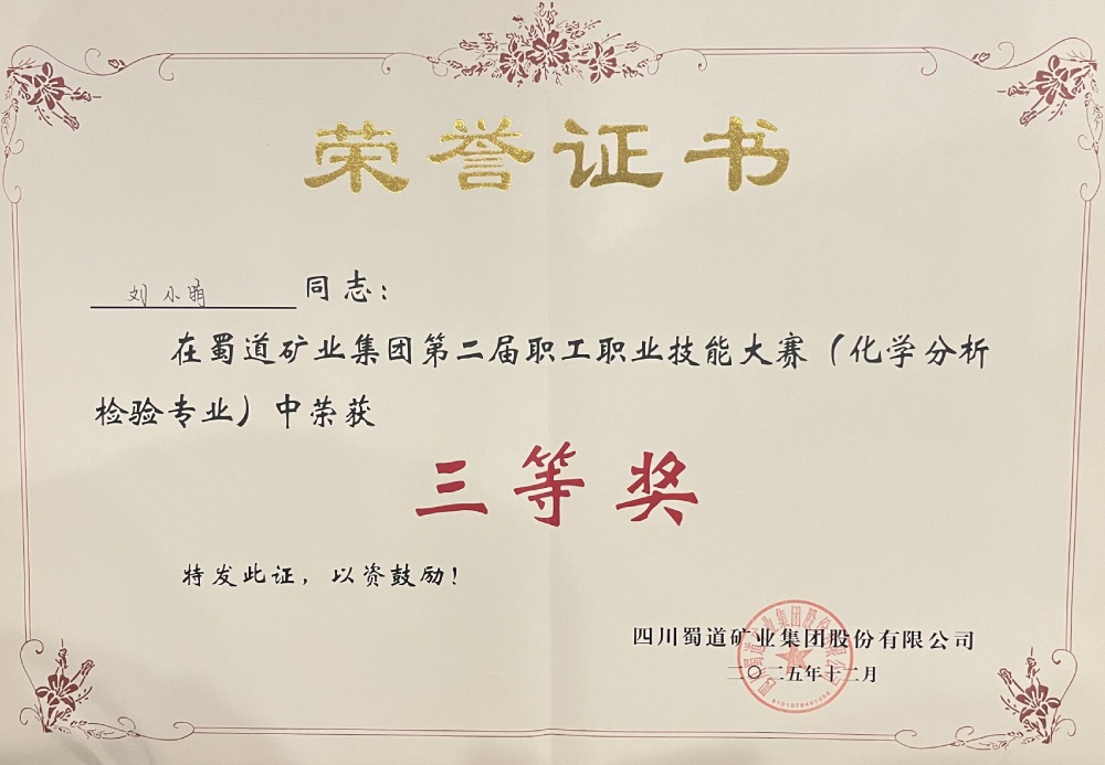 12月19日,蜀道矿业集团第二届职工职业技能大赛(化学分析检验专业)圆满落幕。本次大赛围绕化学检验员岗位核心能力设置专业知识测试,聚焦化学分析检测中的关键环节——标准溶液配制与标定、数据处理与分析等典型工作任务,汇聚了来自7家公司的12支队伍。经过为期两天的层层角逐,海燕策略社区论坛三号矿山技术质量科黄明霞、刘小晴凭借扎实的理论功底和规范的实操技能斩获团队一等奖。同时,黄明霞获个人一等奖,刘小晴获个人三等奖。